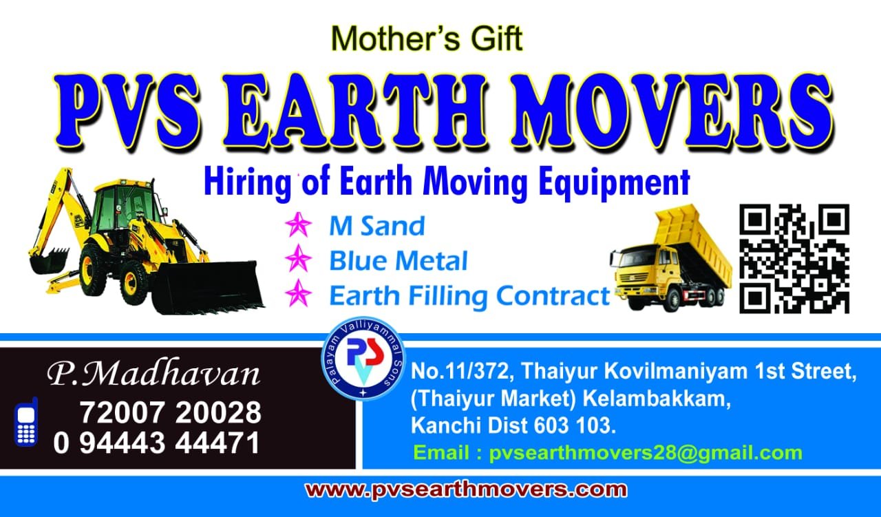 Email : pvsearthmovers28@gmail.com, madhavankani.isai@gmail.com